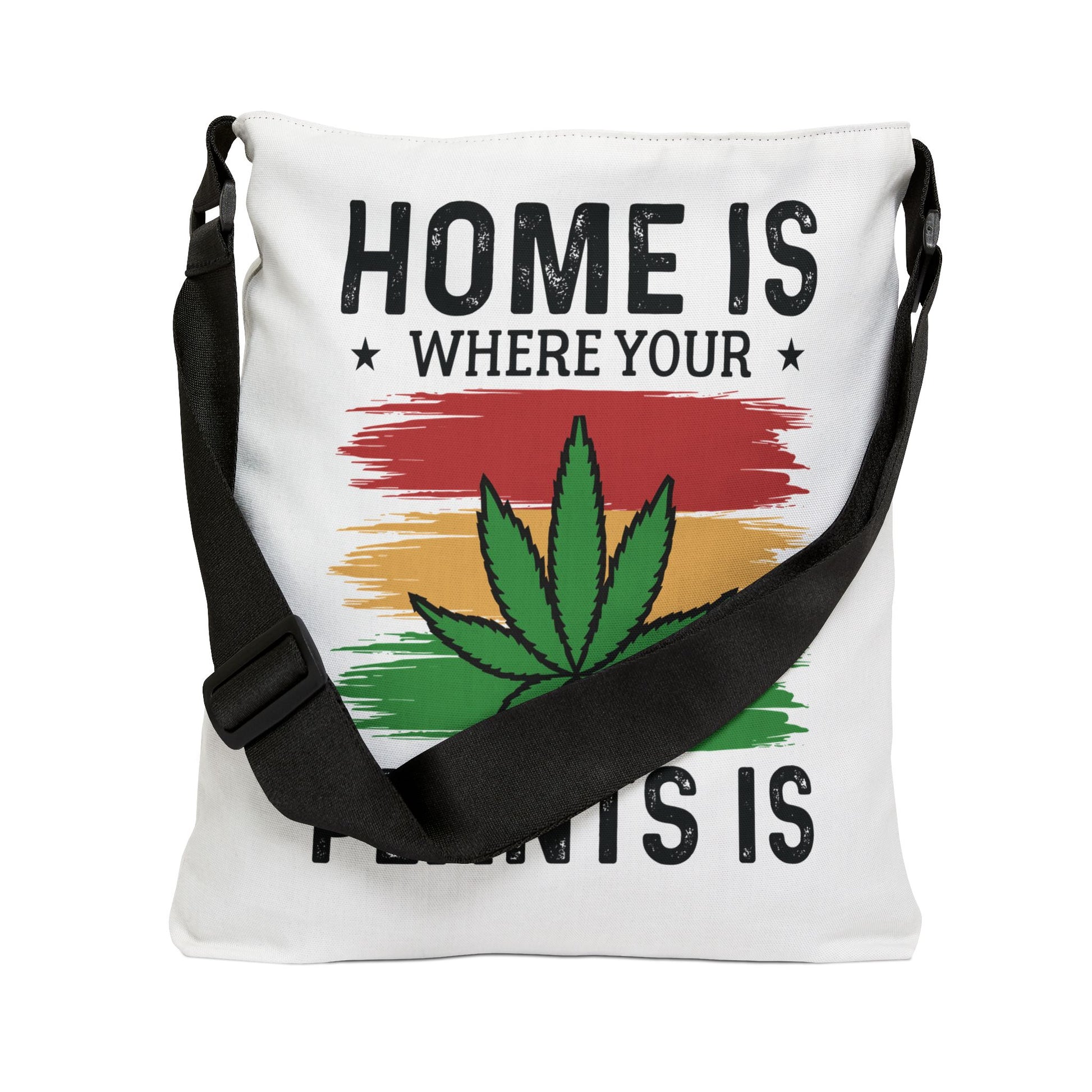 Home is Where Your Plants Is Adjustable Tote Bag, Eco-Friendly Reusable Shopping Bag, Cannabis Lover Gift, Gardening Tote, Summer Accessory