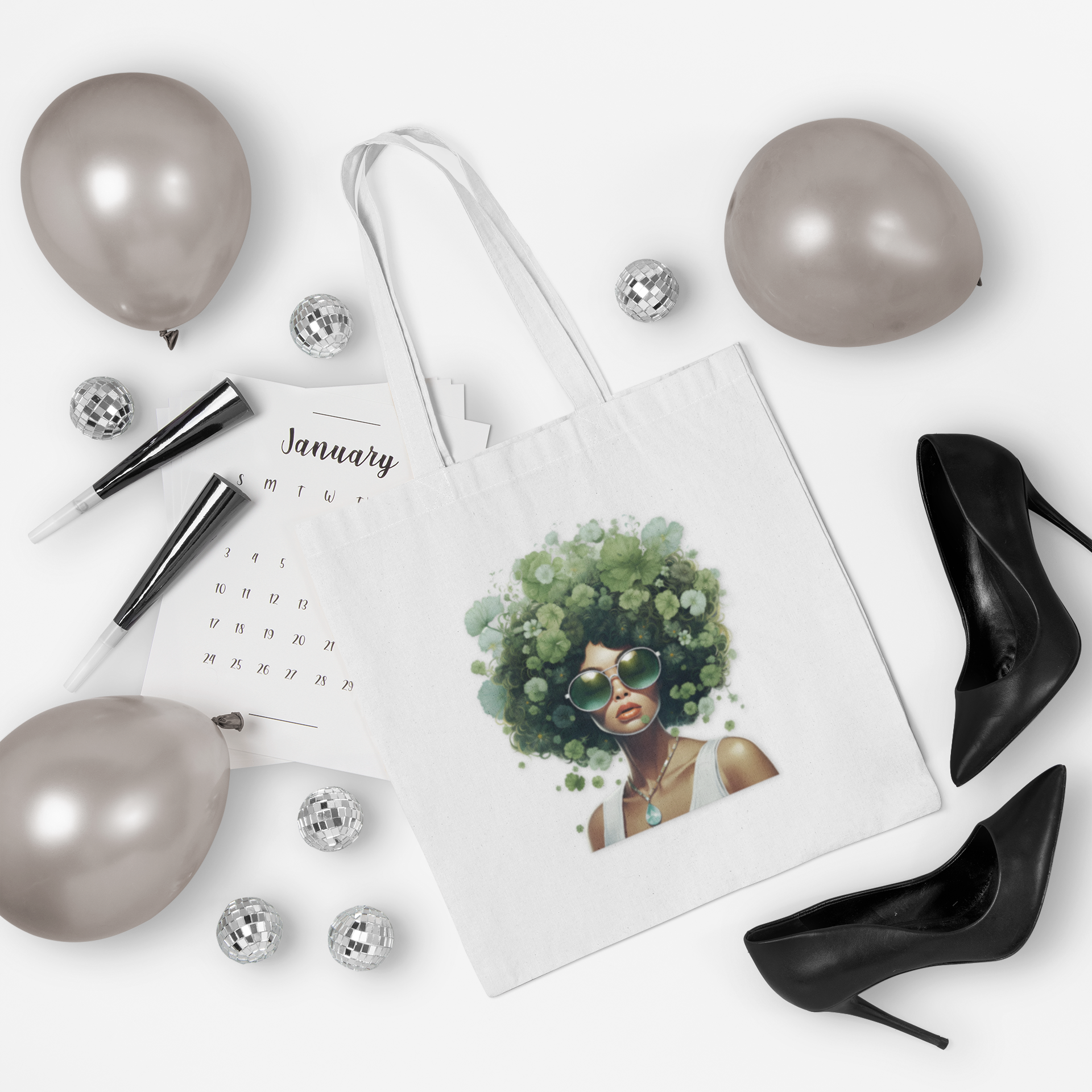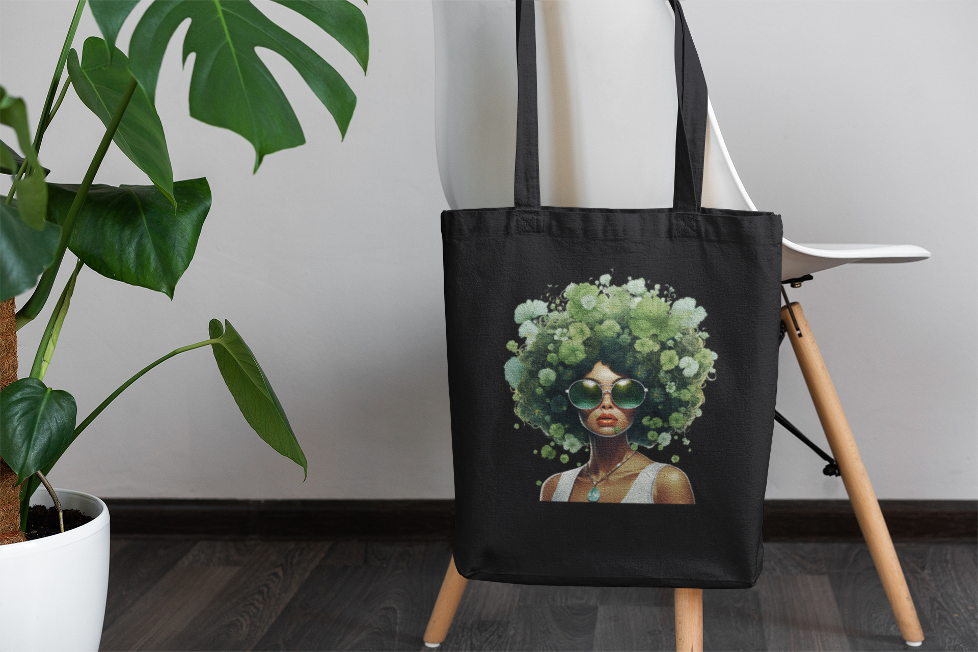 Stylish Eco-Friendly Cotton Tote with Afro Art, Chic Tote Bag, Reusable Shopping Bag, Bohemian Style, Perfect Gift for Nature Lovers